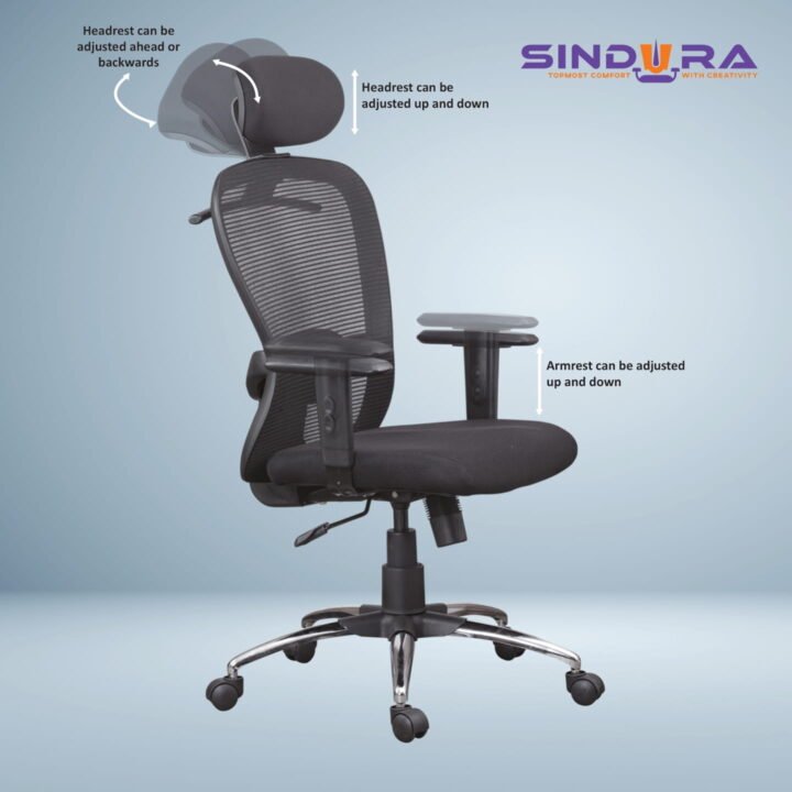 A High back office chair provides comprehensive support to your spine, neck, and shoulders. It helps reduce fatigue and encourages proper posture during long sitting hours. This chair is perfect for professionals who spend extended periods at their desk.