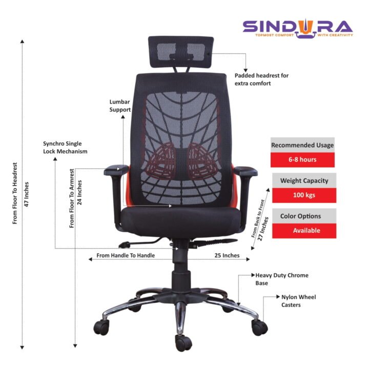 The Marvel high back chair fits perfectly in corporate offices, executive cabins, and home workspaces. Its modern design and full back support make it suitable for a wide range of professional environments.