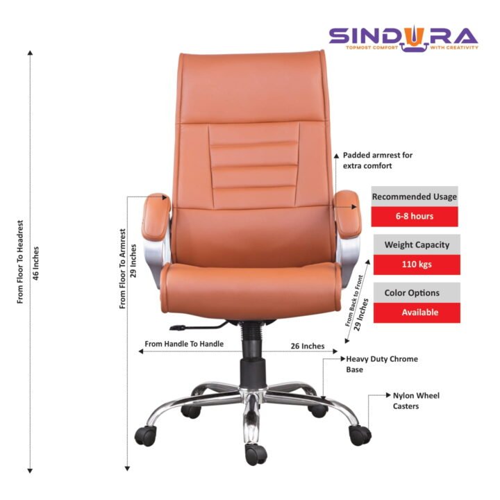 This chair fits seamlessly into executive cabins, corporate offices, and home workspaces. Its high-back design delivers premium comfort while complementing modern interiors.